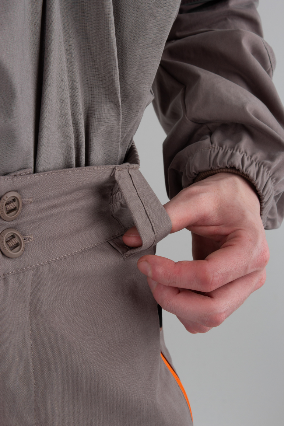 Состоит из куртки типа «анорак» с капюшоном и брюк прямого кроя. Костюм оснащен специальными ловушками для клещей, внутри куртки предусмотрен дополнительный слой хлопковой трикотажной ткани, которая заправляется в брюки для максимальной защиты от проникновения внутрь изделия. Низ куртки регулируется для дополнительного комфорта. Рукава оснащены плотными трикотажными манжетами. Капюшон с отстегивающейся противомоскитной сеткой, которая компактно укладывается в карман на груди. На куртке большой карман-кунгуру с 2-мя входами на молнии и  влагозащитный карман под клапаном. Эластичный пояс со шлевками и внутренней резинкой гарантирует идеальную посадку. Низ брюк собран на резинку, что обеспечивает дополнительный комфорт во время движения. Два боковых кармана без застежки дополняют функциональность модели. Внутренние манжеты на штрипках позволяют заправлять брюки в ботинки для максимальной защиты. Этот костюм отлично подойдет для всех, кто часто и долго бывает в лесу. Для обеспечения безопасности в темное время суток вся печать на изделии является светоотражающей, а также имеются светоотражающие канты.