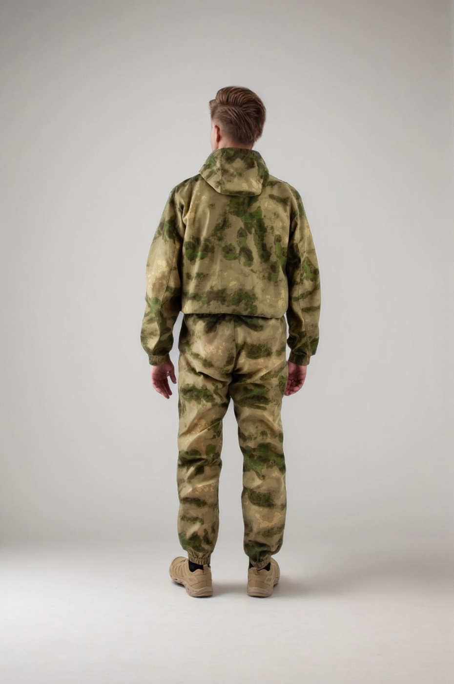 Летний универсальный костюм Пионер из легкой и дышащей ткани - отличный выбор для летней рыбалки, походов, тактических игр. Низ укороченной куртки собран на широкую простроченную резинку. Капюшон регулируется по овалу лица. Два нагрудных кармана закрываются на клапаны с липучками, два нижних кармана с двойными листочками без застежки. Низ брюк и рукавов на резинке.