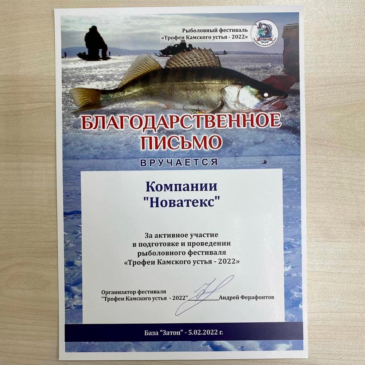 Компания Novatex выступила генеральным спонсором фестиваля. Победители в награду получили полезные подарки. Прекрасным рыбачкам, получившим первые места, досталась новинка этого сезона - зимний женский костюм для рыбалки Ангара с интересным цветом лосось. Победителям среди мужчин подарили зимние костюмы Камчатка, которые давно уже завоевали признание у рыбаков функциональностью, надежностью, удобным кроем и сохранением тепла. Среди других подарков были шапки, перчатки и термобелье торговой марки Grayling.